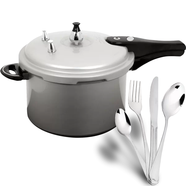 Combo Magefesa olla a presión Vital express + set de cuberteria Cordoba de 16 piezas
